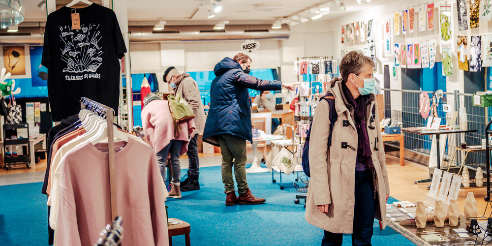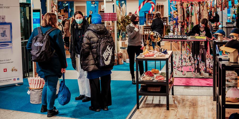 Für den Pop-up-Store «St.Galler Haus» holte das «City Management Board», ein Schulterschluss zwischen Pro City St.Gallen, Gewerbe Stadt St.Gallen, Gastro Stadt St.Gallen, Hotellerie St.Gallen-Bodensee, St.Gallen-Bodensee Tourismus und der Standortförderung Stadt St.Gallen, den Verein «Made in St Gallen», die Kunstplattform supportyourlocalartist.ch sowie die Fachstelle Kind und Familie mit ins Boot. Über 30 Künstler von supportyourlocalartist.ch konnten ihre Kreationen während eines Monates zum Verkauf anbieten und zeigten vor Ort immer wieder, wie neue Werke entstehen.