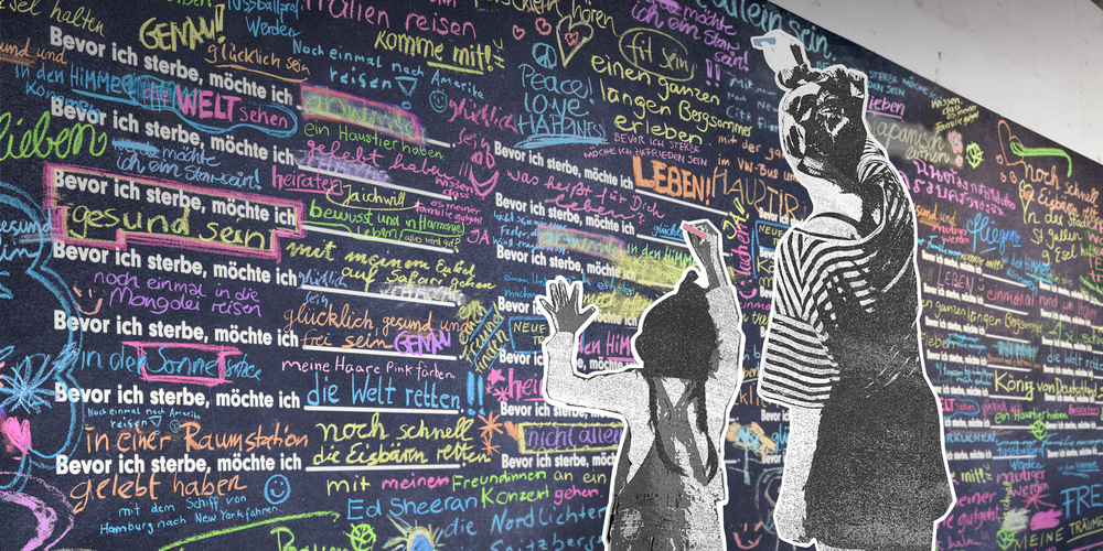 Ursprünglich wurde das Projekt «Before I die» von der amerikanischen Künstlerin Candy Chang nach dem Verlust einer nahestehenden Person ins Leben gerufen. Um ihre Gedanken mit Personen in ihrer Umgebung zu teilen, installierte sie an einem verlassenen Haus in ihrem Wohnquartier in New Orleans eine grosse Wand mit der Aufschrift «Before I die, I want to…» – «Bevor ich sterbe, möchte ich…». Innert kürzester Zeit wurde die Wand von unterschiedlichsten Personen mit ihren Gedanken, Hoffnungen und Träumen befüllt.