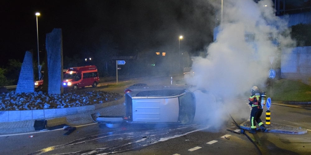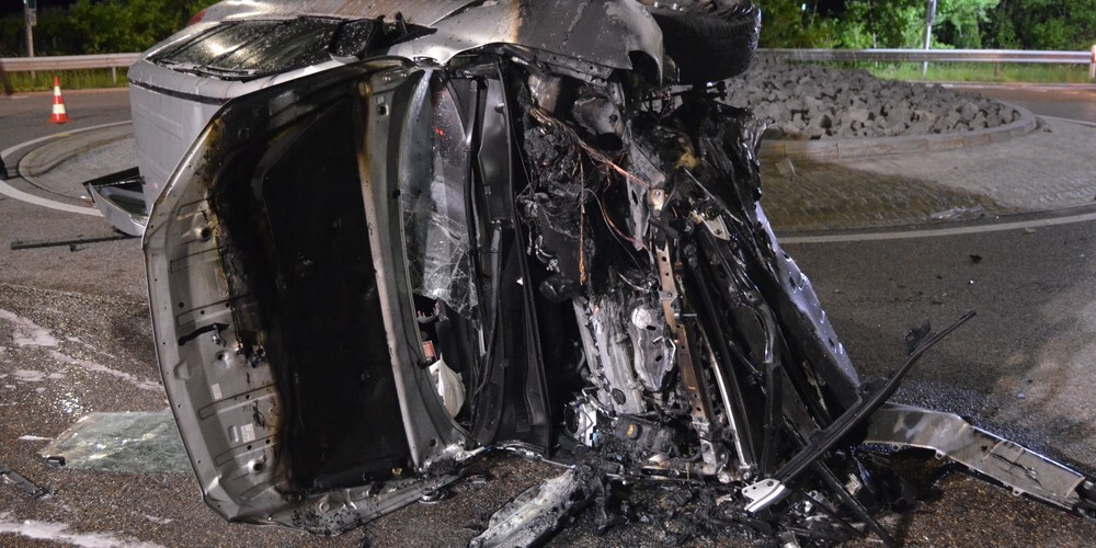 Das Auto hob darauf ab und landete auf der rechten Seite im Bereich der Ausfahrt in Richtung Haslen.