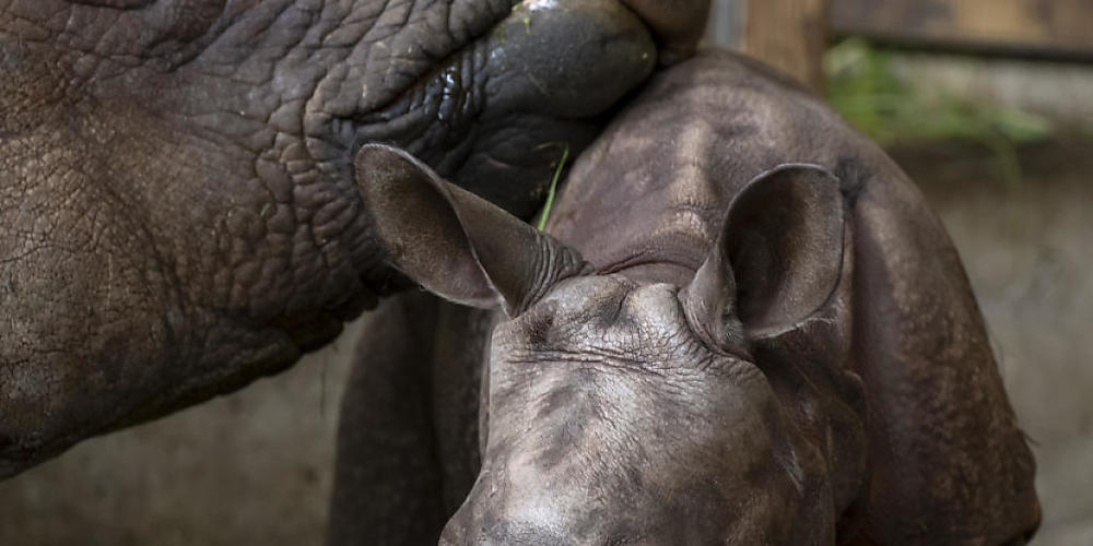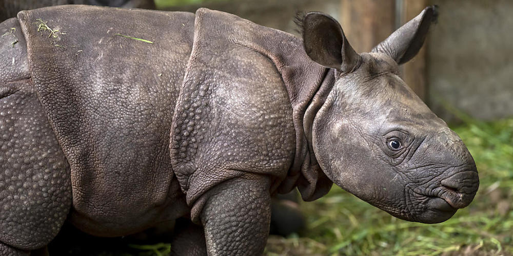 Der Tross der Journalistinnen, Fotografen und Kameraleute schien den gerade mal zwei Wochen jungen Panzernashorn-Nachwuchs nicht sonderlich zu beunruhigen. Er präsentierte sich im Gegenteil von seiner lebendigen und natürlich berührend-süssesten Seite.
