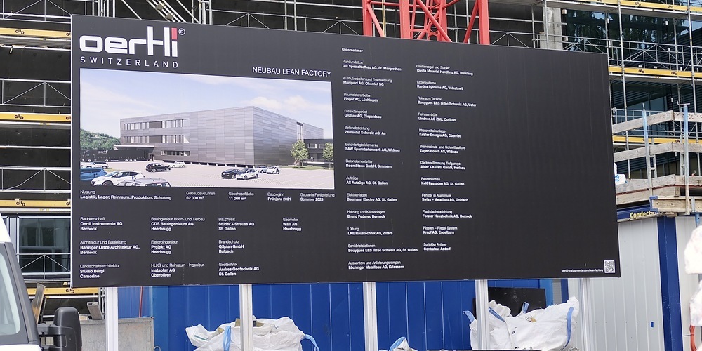 Neunzig Prozent der von Oertli erzeugten Produkte gehen in den Export. Derzeit entsteht am Standort Berneck ein neues Gebäude mit 11´000 m2 Gebäudefläche. Für Logistik, Lager, Reinraum, Produktion und Schulung. Kostenpunkt: ca. 30 Mio Franken.