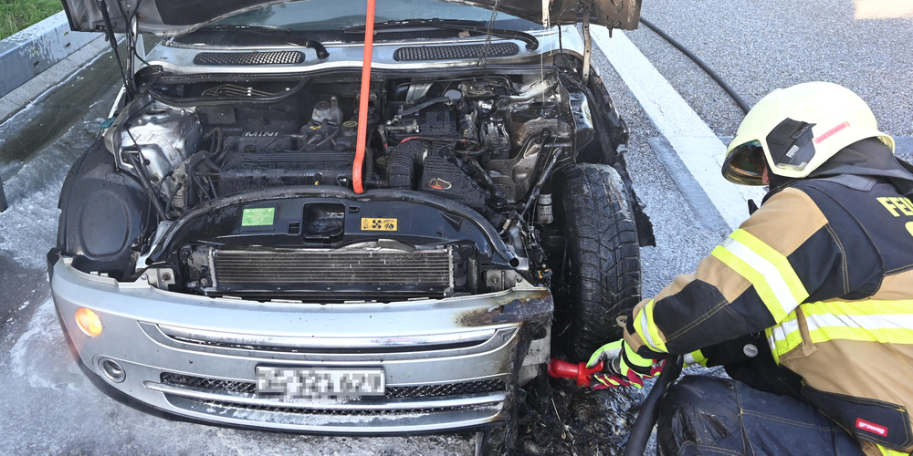 Der Rettungsdienst konnte den Brand vor dem Eintreffen der zuständigen Feuerwehr mithilfe eines Feuerlöschers löschen. Verletzt wurde niemand. Als Brandursache steht ein technischer Defekt im Vordergrund. Am Auto entstand Totalschaden.