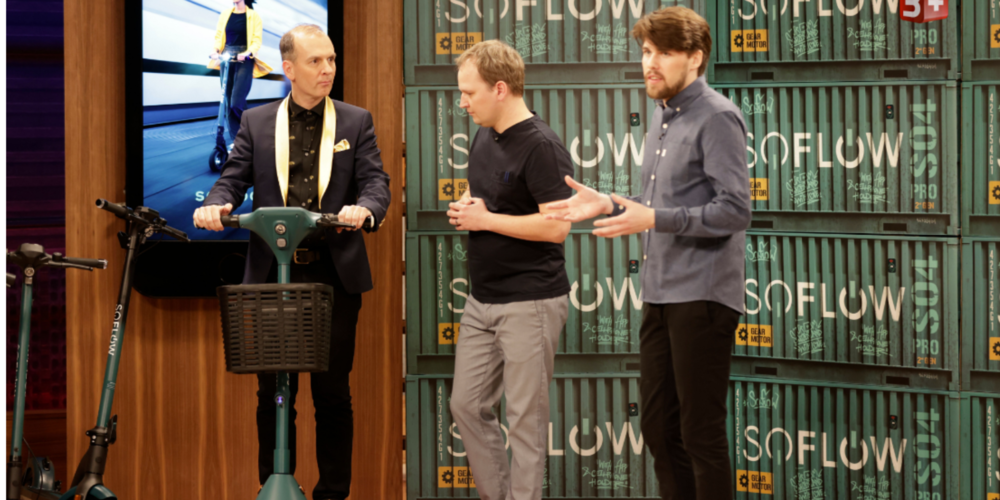 Zweifelsohne viel halten sie von «SoFlow», einem Unternehmen aus Flawil (SG), das E-Scooter herstellt. Sie trauen ihren Ohren kaum, als sie hören, wie sich der Umsatz entwickelt. Die Gründer Manuel Hug (34) und Martin Neuckel (37) wollen jedoch neue Produkte entwickeln und haben auch sonst grosse Pläne. Too much für die Investoren? Oder beissen sie an?