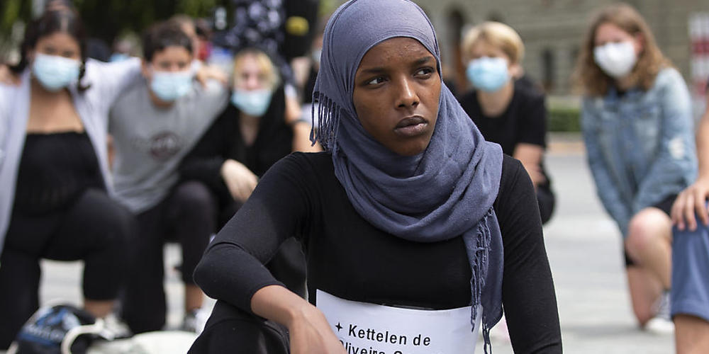 Die mehrheitlich schwarz gekleideten und durchwegs mit Gesichtsmaske ausgerüsteten Teilnehmerinnen und Teilnehmer legten sich 8 Minuten und 46 Sekunden lang auf den Boden, um so an George Floyd zu erinnern. Dieser Schwarze starb Ende Mai in den USA, nachdem ihn ein weisser Polizist so lange mit dem Knie in den Nacken auf den Boden gedrückt hatte.