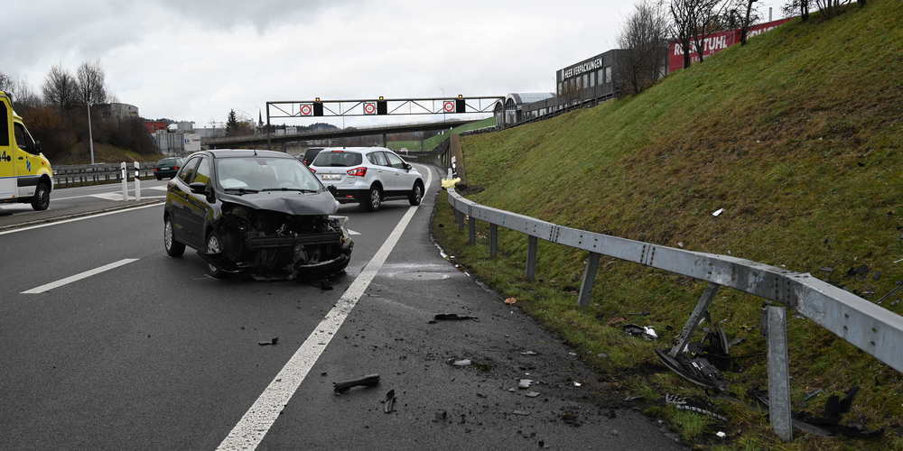 Als er bemerkte, dass sich auf der Normalspur direkt neben ihm ebenfalls ein Auto befand, lenkte er wiederum nach links. Aufgrund der starken Lenkbewegung geriet sein Auto zu weit nach links und prallte in die dortige Mittelleitplanke. In der Folge wurde das Auto abgewiesen, überquerte beide Fahrbahnen sowie die Einfahrtstreifen des Autobahnanschlusses Winkeln und prallte frontal in die rechtsseitige Randleitplanke. Danach kam das Auto zum Stillstand.