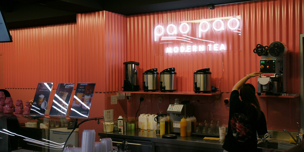 In der Bahnhofsunterführung winken zahlreiche rosafarbene Ballone: «Pao Pao Modern Tea» hat sein Bubble-Tea-Geschäft in die Ostschweiz expandiert. Das rosarote Innenleben strahlt ab Mittwoch, 1. März, nicht mehr nur in Zürich, sondern auch in St.Gallen.