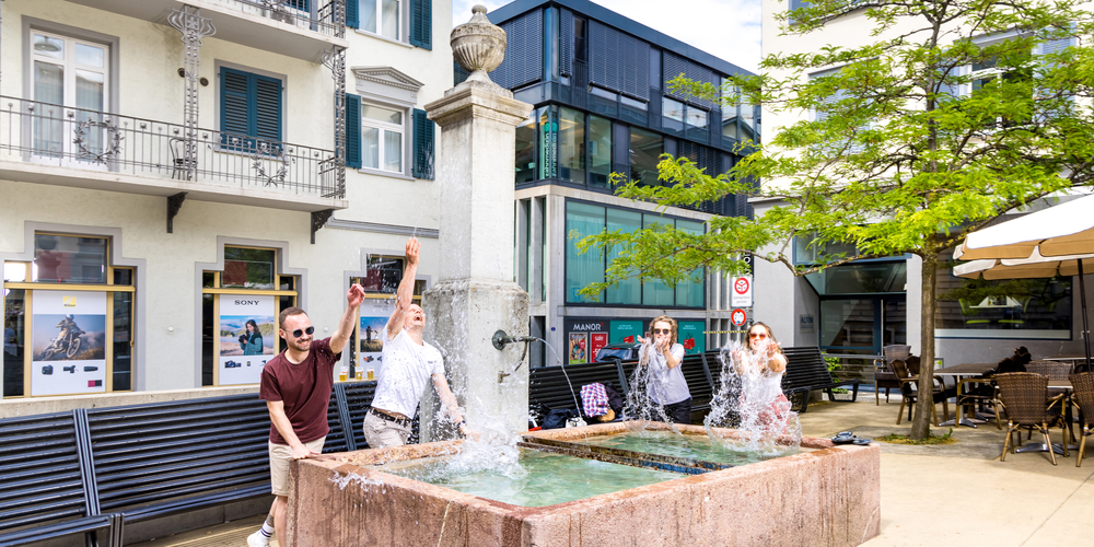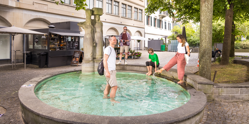 Eine Erfrischung mitten in der sommerlichen Stadt? Bei der Sommerkampagne Fountain Dip von Schweiz Tourismus laden ausgewählte Brunnen in Schweizer Städten zum Erfrischen und Baden ein. Aufgewertet wird das «Summer in the City»-Erlebnis in einigen Städten durch Konzerte, Aktivitäten oder trendige Food-Angebote.