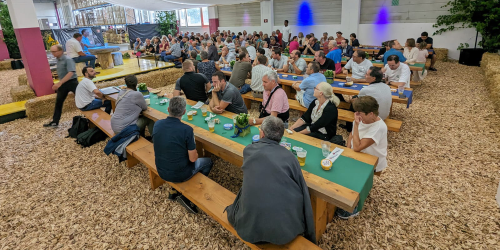 Bei reichlicher Verpflegung konnte danach einerseits der Hunger gestillt werden, andererseits erfuhren die Anwesenden aus erster Hand, wie es gelingt, auch in wirtschaftlich schwierigen Zeiten erfolgreich zu sein. Im Feuerschalen-Gespräch mit Godi Siegfried, PMO-Bauernpräsident und langjähriger Weggefährte von Christof Züger, erklärte der Unternehmer aus Leidenschaft, was es braucht, um ein Unternehmen aufzubauen. «Leistungsbereitschaft und Eigenverantwortung sind genauso wichtig, wie der Mut, ausgetretene Pfade zu verlassen und Neues zu wagen.»