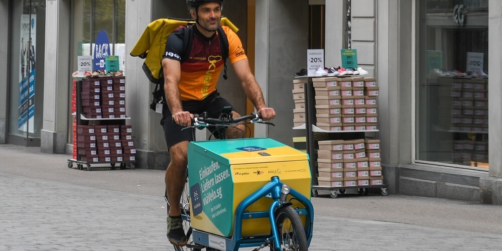 Wer in der St.Galler Innenstadt einkauft, kann die Einkaufstaschen in den teilnehmenden Geschäften aufgeben und mit der App «viaVelo» die Lieferung direkt auslösen. Die bestellten Waren werden am gleichen Tag und im gewünschten Zeitfenster via Velo nach Hause transportiert. Beliefert werden Adressen innerhalb der Stadt St.Gallen mit Postleitzahl 9000 bis 9016.