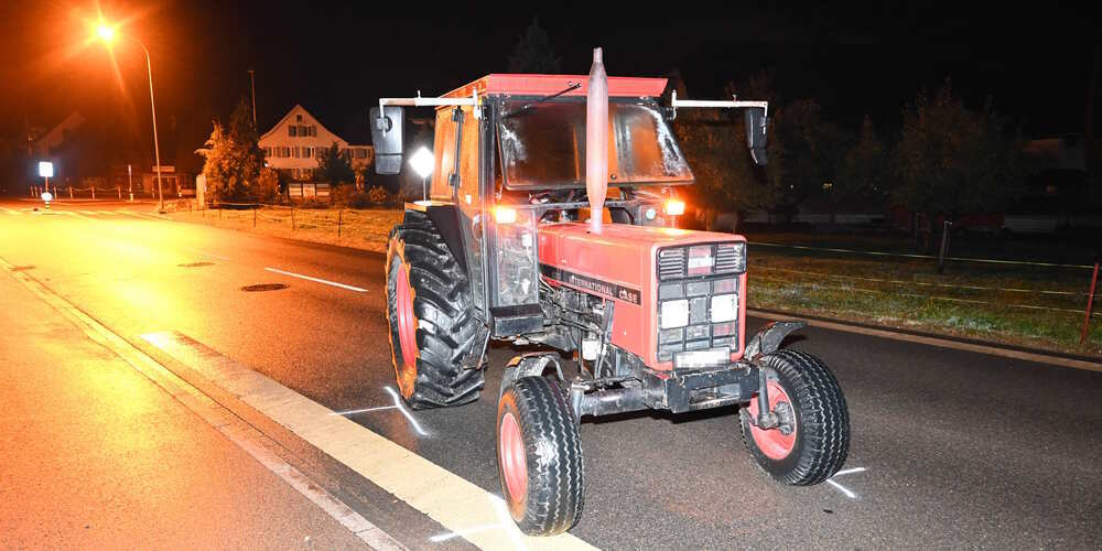 Inzwischen bemerkte der Bauer das Fehlen seines Traktors und rannte diesem hinterher. Daraufhin sprang einer der Jugendlichen vom Traktor runter. In der Folge streifte der Traktor mit dem zweiten Jugendlichen am Steuer ein Verkehrsschild und prallte schliesslich in den Schutzpfosten der Verkehrsinsel, Höhe Liegenschaft Dorfstrasse 1. Danach kam er zum Stillstand.