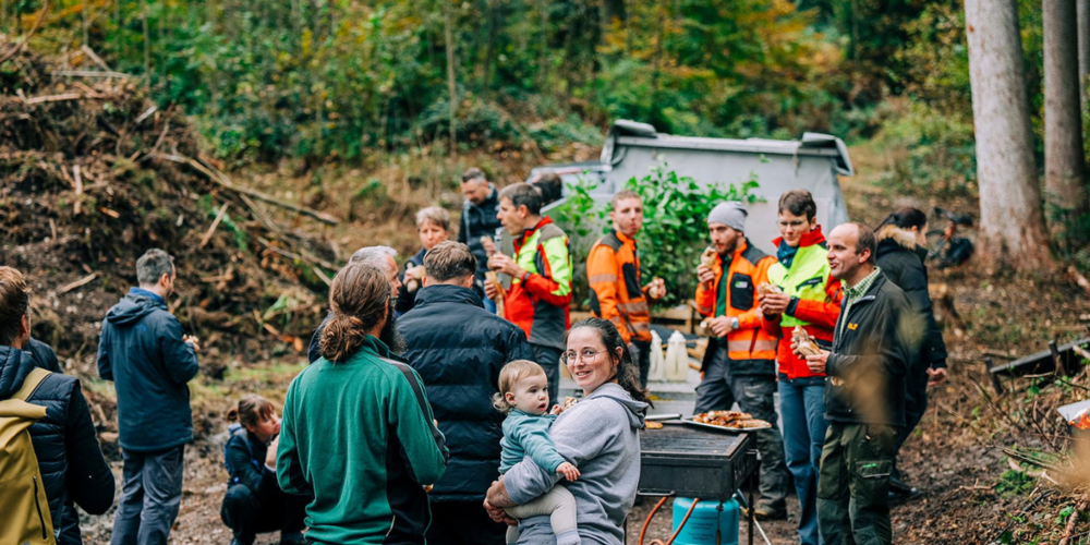 Insgesamt nahmen 18 Erwachsene und acht Kinder am Baumpflanztag teil. Fünf Mitarbeitende des ortsbürgerlichen Forstbetriebs halfen den Familien die jungen Bäumchen fachgerecht zu pflanzen. So wurden insgesamt 96 Traubeneichen und 25 Vogelkirschen gepflanzt und durch Einzelschütze vor Wildverbiss geschützt.