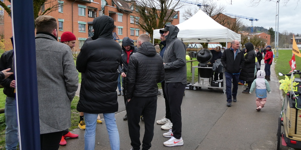 Auch wenn die geplanten Aktivitäten auf der Wiese buchstäblich ins Wasser fielen, kamen viele Besucher vorbei. Bei Wurst und Brot diskutierten sie über die Ausgangslage und mögliche alternative Standorte für die neue Tagesbetreuung. Wegen «unbespielbaren Terrains» war das geplante Fussballspiel mit Mitgliedern eines Vereins der Alternativen Fussballliga und Junioren aus dem Quartier nicht möglich.