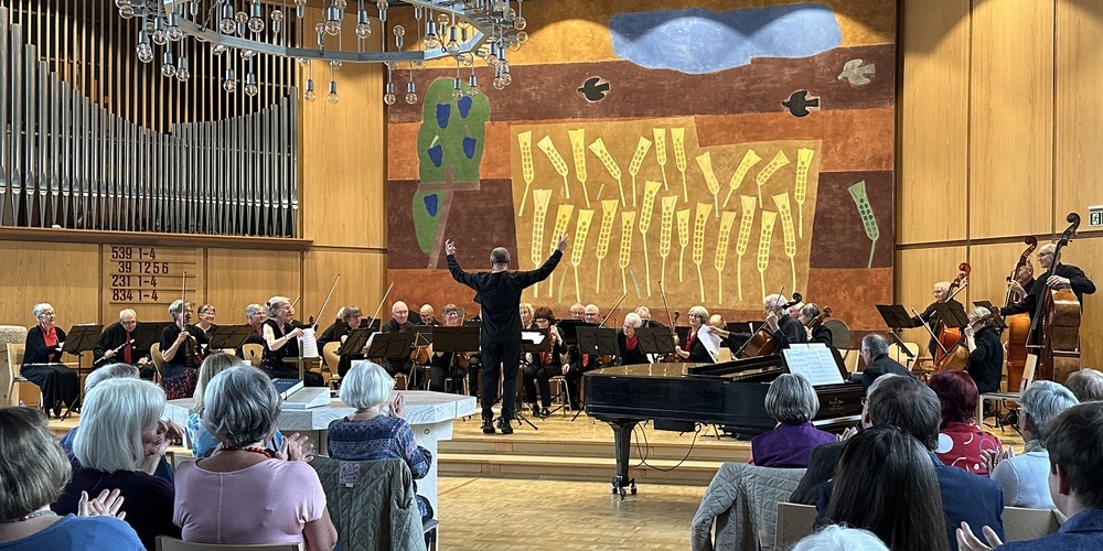 Rund 200 Besucher erlebten eine beschwingte, abwechslungsreiche musikalische Reise um die Welt: von der Klingenden Geografie von G.F. Telemann über die Barcarole von Jacques Offenbach zur Sinfonie Nr. 2 von Joseph Bologne oder den Donauwellen von Iosif Ivanovici zum Mull of Kintyre von Paul McCartney, dem Zäuerli ond Wälzerli von Markus Schai sowie zum The Entertainer von Scott Joplin und Colonel Bogey von Kenneth J. Alford.