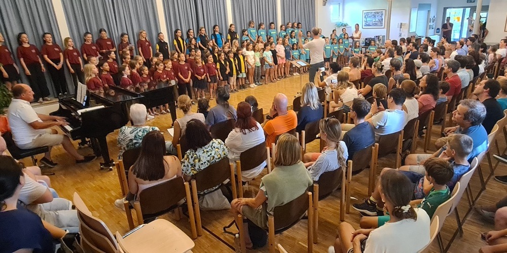 Nun stellten sich die Chöre gegenseitig vor. Der Kinderchor der Musikschule Appenzeller Mittelland unter der Leitung von Hiroko Haag präsentierte ein schmissiges afrikanisches Lied.