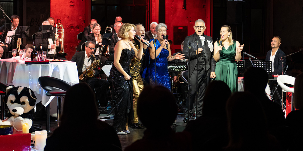 Den Auftakt machte die Dreiländer-Big-Band Swingwerk mit ihrem gewaltigen Sound. Als die «Jingle Bells»-Türglocke erklang, traten weitere Künstler auf die Bühne und verwandelten die Lokremise in eine Weihnachtsstube.