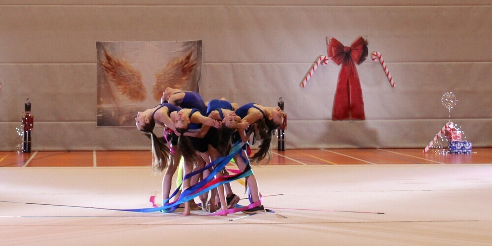 Die Show wurde von der jüngsten Gymnastin im Leistungszentrum, der sechsjährigen Junia Langenegger, eröffnet. Sie zeigte ihre Übung ohne Handgerät mit viel Selbstvertrauen. Danach turnte die um zehn Jahre ältere und erfahrene Seniorin Mia Engel ihre neue Reifübung – sehr hohe Würfe und Schwierigkeiten mit ausdrucksvollem Tanz.