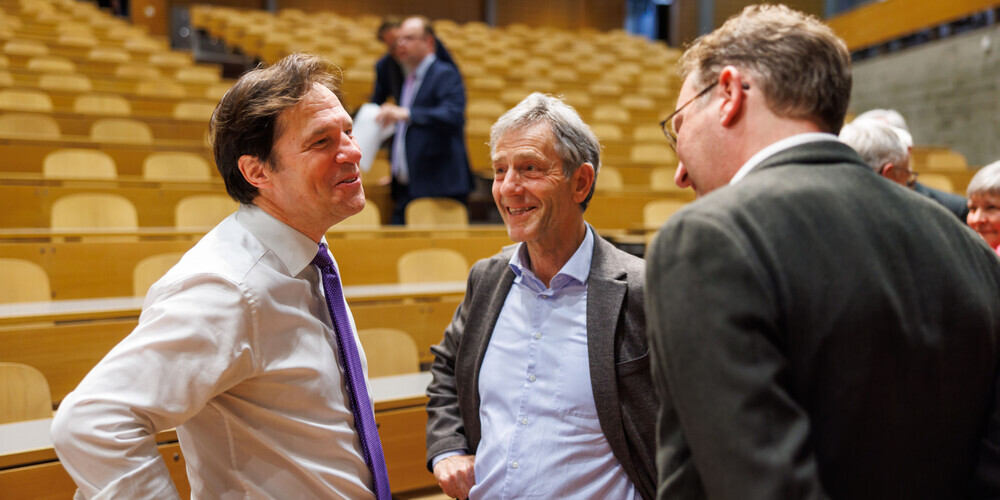 In seiner Abschiedsvorlesung mit dem Titel «Die offene Gesellschaft und ihre Feinde» sprach Frei über zentrale Themen wie Autonomie und Einschränkungen der Freiheit, bürgerschaftliches Engagement und die Erosion zivilgesellschaftlichen Zusammenhalts, Lernfähigkeit und Selbstkritik. «Geschichte ist offen, auch im Kleinsten. Jeder Einzelne steht in der Pflicht, sie mitzugestalten», schloss Frei unter stehenden Ovationen, dankend an alle, die ihn auf seinem Weg begleitet haben.