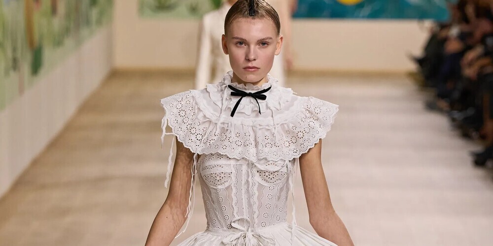 Für die Dior Couture-Kollektion interpretierte Forster Willi Broderie Anglaise als poetische Vision neu. Gleich fünf Kreationen wurden für den Laufsteg entwickelt. Archivstickereien, schmale und breite Gallons sowie feine Mousseline in Reinweiss verleihen den Looks eine Aura von Nostalgie und Zartheit.