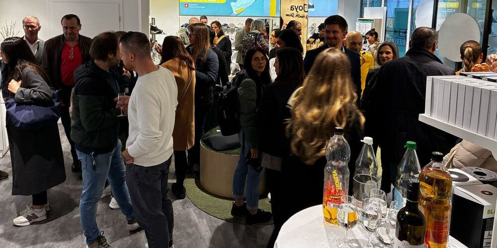 Der Apéro ging danach weiter, die Gäste konnten die Schuhe anprobieren, anstossen und sich bei fröhlichen Gesprächen austauschen. So wurde das Event zu einem rundum gelungenen Abend, der den Gästen noch lange in Erinnerung bleiben wird.