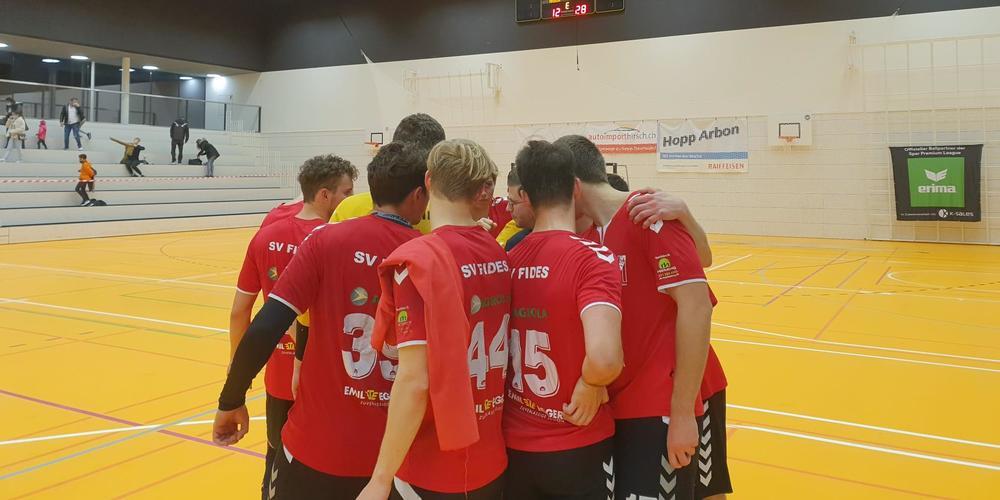 Von Beginn weg war SV Fides hellwach und ging durch Tore von Julian Schlachter und Elias Müller schnell mit 2:0 in Führung. HC Arbon erzielte nach drei Minuten den ersten Treffer und erzielte gleich 3 in Serie. Damit übernahm HC Arbon die Führung. Mit fünf Toren in Serie nahm SV Fides jedoch schnell wieder das Heft in die Hand zum Spielstand von 3:7. Im Tor machte mehrheitlich Torhüter Schmid dicht.