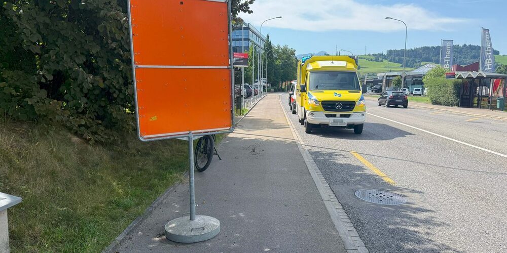 Als der Fahrradstreifen endete, setzte sie die Fahrt auf dem Trottoir fort. Auf Höhe der Altenwegenstrasse übersah die 63-Jährige ein auf dem Trottoir stehendes Verkehrsschild und kollidierte mit diesem.