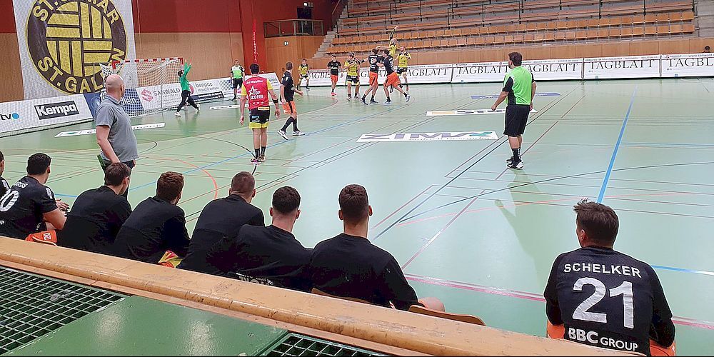 Nach einer ausgeglichenen Startphase setzte sich der Favorit aus Schaffhausen ab und lag nach 20 Minuten mit fünf Toren in Führung (6:11). Der TSV St. Otmar konnte in der Folge nochmals auf drei Treffer verkürzen (10:13 nach 23 Minuten), doch dann gelangen ihm bis zur Pause keine weiteren Tore mehr, während Kadetten Schaffhausen noch vier Mal jubeln konnte. Der Seitenwechsel erfolgte beim Stand von 10:17. Der TSV St. Otmar hatte in den ersten dreissig Minuten schlicht zu viele Möglichkeiten liegen gelassen, um mit einem besseren Skore die Seiten wechseln zu können.