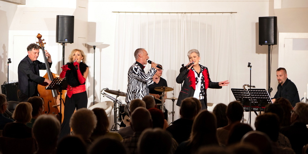Begleitet von Alan Sokol (Piano), Reto Giacopuzzi (Schlagzeug) und Ralph Hufenus (Kontrabass) eröffnete die Band den Abend mit «Sing, Sing, Sing», noch bevor das Vokaltrio den Saal betrat.