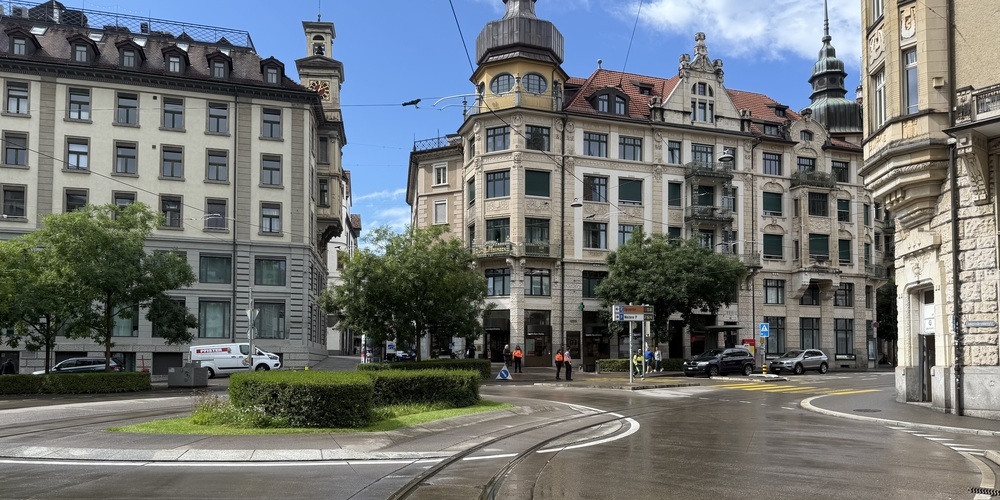 Am Freitagnachmittag (05.09.2025) hat sich auf der Linsebühlstrasse ein Selbstunfall ereignet. Ein Velofahrer rutschte auf den nassen Bahnschienen aus und verletzte sich mittelschwer.