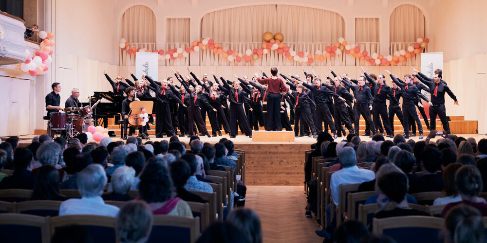 Die Bühne der Tonhalle war im Mai bis auf den letzten Platz gefüllt: Über 100 junge Stimmen aus allen Chorgruppen der Domsingschule St.Gallen.sangen gemeinsam – ein bewegender Höhepunkt des Jubiläumsjahres.