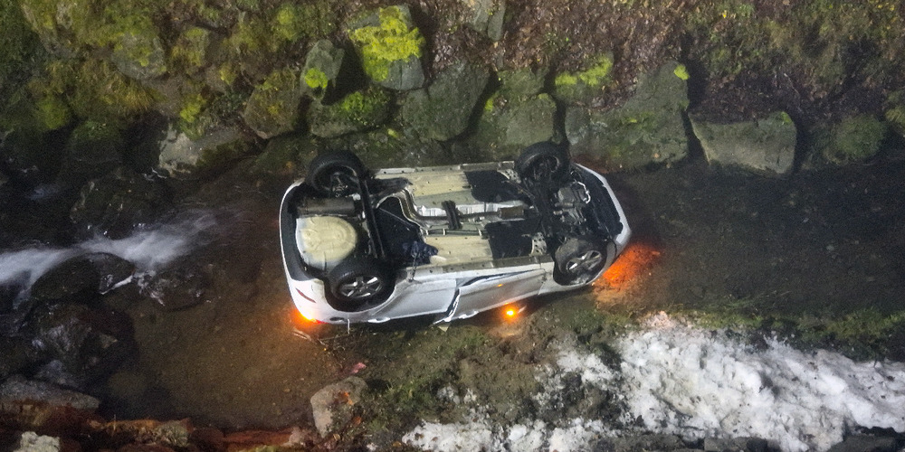 Am Sonntagabend kurz nach 20.30 Uhr stürzte eine 64-jährige Autofahrerin mit ihrem Auto aus noch ungeklärten Gründen von der St.Georgen-Strasse rund vier Meter in die Steinach.