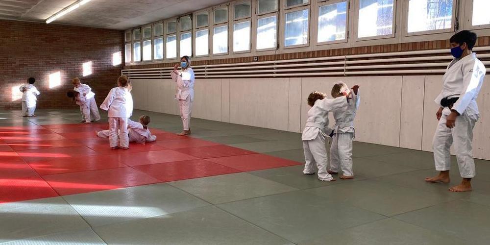 Seit Ende der Herbstferien werden sie jeden Montagnachmittag mit dem Club-Bus abgeholt und ins Dojo (Trainingshalle) gebracht. Dort schlüpfen sie in ihre Judogi (Kampfgewänder) und dürfen eine Stunde lang mit der Trainerin Manuela Peter-Stuppan Judo machen. Auf den Tatami (Judomatten) lernen die Abtwiler Kinder erste Würfe und Festhaltegriffe und können sich in spielerischen Kampf-Formen austoben.