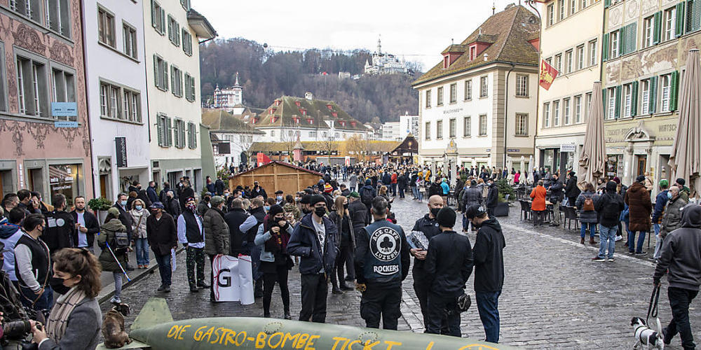 Der Verband Gastro Luzern hatte zur Kundgebung aufgerufen, die auf dem Mühlenplatz startete. Seiner Ansicht nach sind die Härtefallhilfe von Bund und Kanton ungenügend. Das Luzerner Härtefallprogramm beläuft sich auf 25 Millionen Franken. Davon stammen 8,58 Millionen Franken vom Bund.