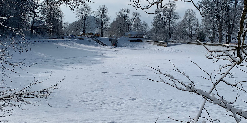 Die Grundabwasserleitungen im Buebeweier werden saniert. Diese entsprechen mit ihren hundert Jahren nicht mehr den aktuellen Sicherheitsanforderungen. Deshalb werden die alte Holzleitung ausgewechselt und neue Schieber eingebaut, die man künftig inspizieren kann, ohne alles Wasser aus den Weihern lassen zu müssen. Der Buebeweier wurde komplett, der Manneweier um fünf Meter teilentleert. Ende Februar 2021 sollen die beiden leeren Weiher wieder gefüllt werden.