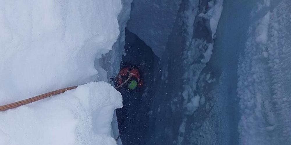 Sein Begleiter alarmierte sofort die Einsatzzentrale der Rega. Zwei Bergretter wurden mit Rettungsmaterial am Unfallort abgesetzt. Einer von ihnen seilte sich zum verunfallten Tourenfahrer in die Spalte ab. In engsten Platzverhältnissen gelang es ihm, dem Verunfallten das Bergedreieck anzulegen. Damit können leichtverletzte Patienten in aufrechter Haltung geborgen werden.