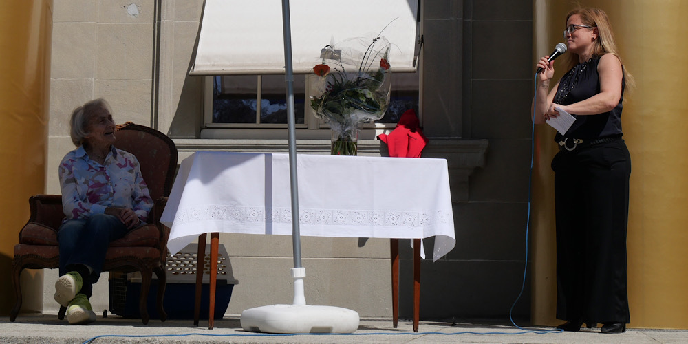 Nach der Musikeinlage wurde der Geburtstagskuchen von Maria Pappa angeschnitten und Studer öffnete die Sektflasche. Im Nachhinein wurde die bald 100-jährige von ihrem Sohn noch interviewt. Zum Beispiel erwähnte sie, wie sie sich ein bisschen schämte, als ihr Grossvater ein heruntergekommenes Haus gekauft hatte, das die Mädchen nur in der Kreuzbleiche Fussball spielen durften oder was für eine grosse Bedeutung das Skifahren für sie hatte.
