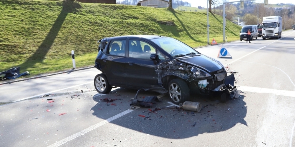 Das Auto drehte sich um 90 Grad und kollidierte ein zweites Mal mit dem Lieferwagen. Aufgrund des Aufpralls kollidierte das Auto ausserdem mit dem vorderen Fahrzeug. Weshalb es zur Auffahrkollision kam, ist derzeit noch nicht geklärt. Zwei Personen erlitten leichte Verletzungen, eine davon wurde hospitalisiert. Es entstand hoher Sachschaden. Während rund zwei Stunden kam es zu Verkehrsbehinderungen.