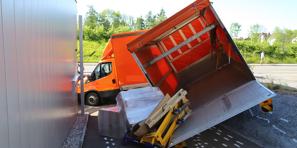 Personen wurden keine verletzt. Es entstand erheblicher Sachschaden und der Lieferwagen musste geborgen werden.
