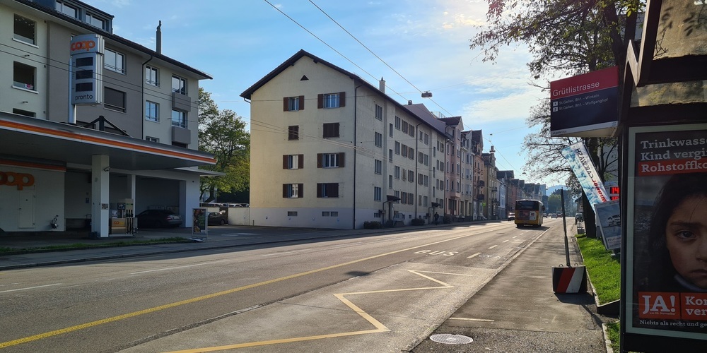 Zum Einbau des Deckbelags wird die Rorschacher Strasse im Abschnitt Rehetobel- bis Grütlistrasse ab Sonntagmorgen, 13. Juni 2021, von 6 Uhr, bis Montagmorgen, 14. Juni 2021, um 6 Uhr, vollständig gesperrt.