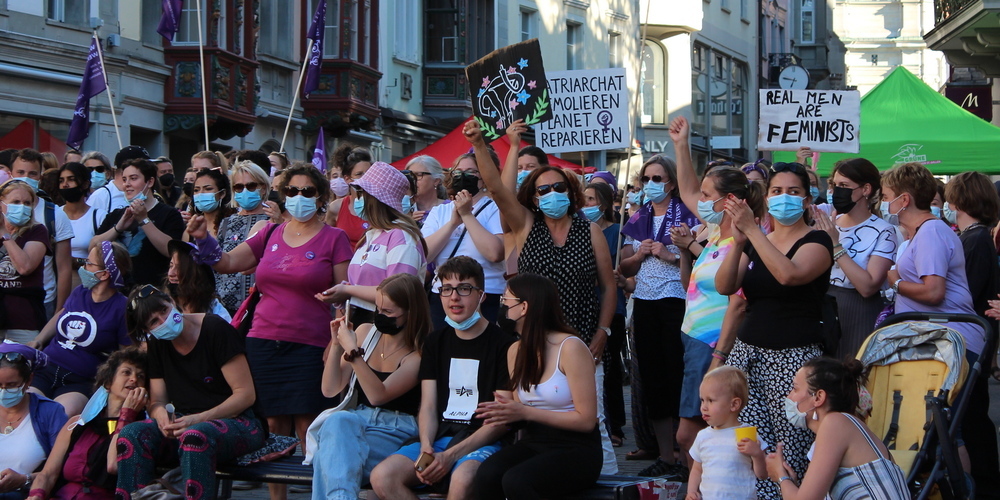 Das Programm war prall gefüllt und vielfältig: Von Poetry Slams über einer Rede in Gebärdensprache bis hin zu einer Musikeinlage war alles dabei. Die Stimmung war friedlich, einige sassen am Rand auf ihren Stühlen und tranken ihr Bier während andere Plakate mit Aufschriften wie «Viva la Vulva» oder «Ufä mit de Frauelöhn, abe mit de Bohni!» in den Himmel streckten.