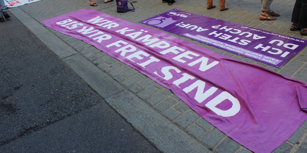 «Wir kämpfen bis wir frei sind», mit diesem Worten starteten die Frauen und Männer den jährlichen Frauenstreik. Um18 Uhr zogen sie quer durch die St.Galler Innenstadt und trafen sich um 19 Uhr zu einer Kundgebung.