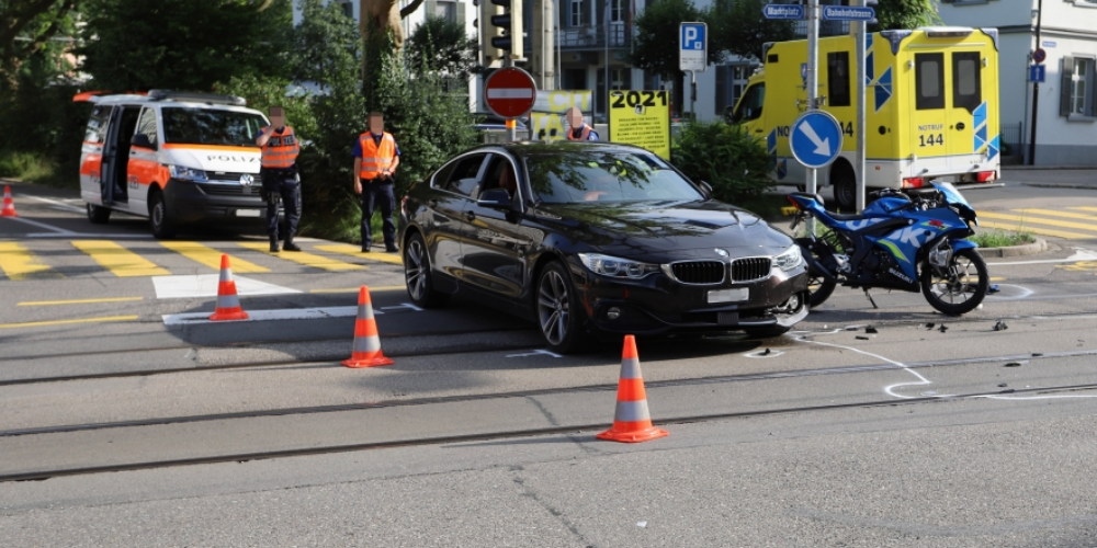 Am Sonntagabend, um 17:40 Uhr, ereignete sich beim Oberen Graben bei der Verzeigung Schibenertor eine Kollision zwischen einem Motorrad und einem Personenwagen.