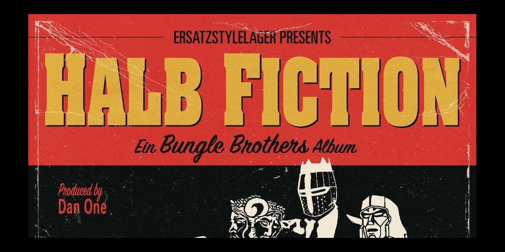 Das neue Album der St.Galler Hip-Hop-Band Bungle Brothers heisst«Halb Fiction». Während der Bandname eine Hommage an das legendäre Hip-Hop-Duo Jungle Brothers aus New York ist, verweist «Halb Fiction» auf Quentin Tarantinos Kultfilm Pulp Fiction aus den 1990er-Jahren und damit auf jene Zeit, als die Mitglieder der Bungle Brothers mit Rappen angefangen haben. Daneben bringt «Halb Fiction» auch die Coronazeit auf den Punkt, in der es manchmal gar nicht so einfach war, Wahrheit und Fiktion zu unterscheiden.