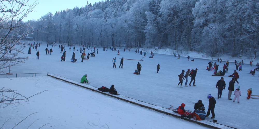 Damit der Bubenweier zum Eislaufen geöffnet werden kann, muss das Eis an der dünnsten Stelle zwölf Zentimeter dick sein. Dabei muss es sich um sogenanntes «schwarzes Eis» handeln. Das ist Eis, das sich allein durch Kälte und Wasser gebildet hat. Eis, das sich durch Regen und Schnee gebildet hat, ist weniger tragfähig. Für «schwarzes Eis» ist eine langanhaltende Kälteperiode mit möglichst trockenem Wetter nötig.