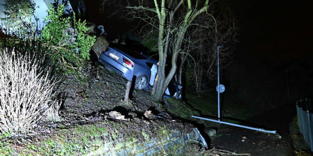 Dort kollidierte es nach wenigen Metern zuerst mit einem Verkehrsteiler «Biene Maya» und einem Metallpfosten, welche die Zufahrt für Motorfahrzeuge verhindern sollten. Das Auto durchbrach diese und fuhr einen Kandelaber um. Anschliessend fuhr es linksseitig in eine aufsteigende Böschung einer Liegenschaft an der Hohrainstrasse. Dort kam es nach einigen Metern zwischen Sträuchern und Bäumen zum Stillstand.