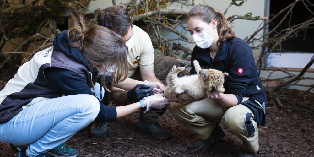 Das verletzte Baby ist inzwischen aber wieder wohlauf und erkundet zusammen mit seinem Geschwisterchen die Innenanlage. Atlas wird derzeit noch immer getrennt gehalten und darf sich täglich für ein paar Stunden mit Lin und Jumina in der Aussenanlage treffen. Sobald die kleinen Löwen etwas älter sind, bekommt er eine dritte Chance, seinen Nachwuchs von nahem zu begutachten.