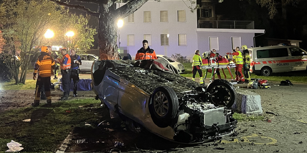 Ein Auto mit fünf Insassen fuhr an Karfreitag vom Bahnhof Niederuzwil her in Richtung Augarten. Auf der Höhe des Parkplatzes «Töbeli» kam es von der Fahrbahn ab. Es überquerte rechtsseitig das Trottoir. Dort prallte es in eine Leitplanke und hob ab. Es flog mehrere Meter durch die Luft und schlug an einem Bachbord auf. Anschliessend überschlug es das Auto und schlidderte dem Parkplatz entlang. Schliesslich kam es auf dem Dach liegend zum Stillstand.