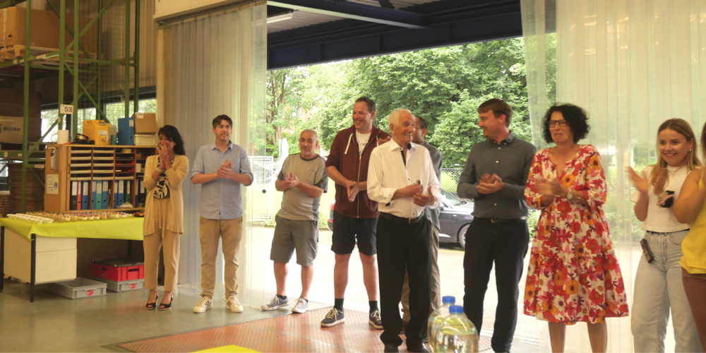 Am Freitagmittag versammelte sich ein grosser Teil der Mitarbeiter sowie VR-Mitglied Markus Neff, der ehemalige Firmeninhaber Wolf Studer mit seiner Frau Silva Studer-Opitz an der Haggenstrasse 40, um Finanz- und Personalchef Marcel Enz zu verabschieden.