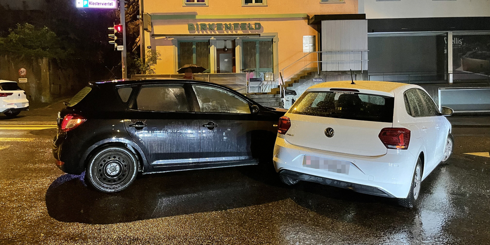 Am Freitag, um 22.45 Uhr, fuhr eine 27-Jährige mit ihrem Auto auf der Oberstrasse in Richtung Geltenwilenstrasse. Vor dem Verzweigungsbereich befuhr sie die Rechtsabbiegespur. Wegen Unaufmerksamkeit missachtete die Autofahrerin die Spurführung und fuhr geradeaus.