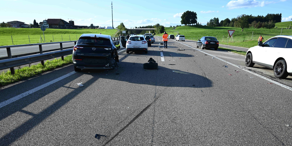 Folglich kam es zu einer Auffahrtskollision mit sechs Autos. Dabei wurden zwei Personen leicht verletzt. Eine davon wurde ins Spital gebracht und eine weitere suchte selbstständig einen Arzt auf. Es gab einen Sachschaden von mehreren 10'000 Franken. Zwei Autos erlitten einen Totalschaden und mussten abgeschleppt werden.