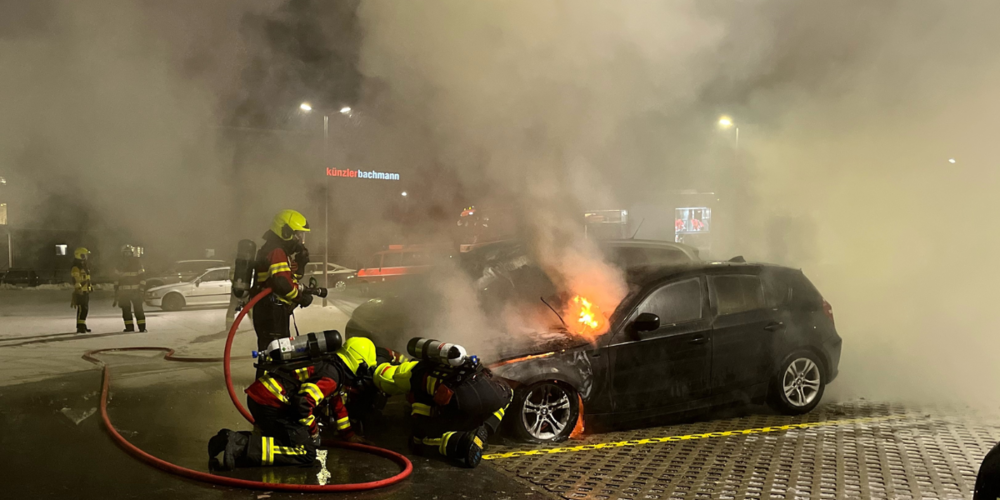 Eine 25-jährige Frau parkierte das Auto um 4:45 Uhr auf einem Parkplatz. Einige Minuten später meldete eine Auskunftsperson, dass das Auto in Brand stehen würde.